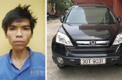 Nguyễn Anh Cường và chiếc ôtô Honda CRV do tên hắn thuê làm phương tiện khi đi trộm cắp.