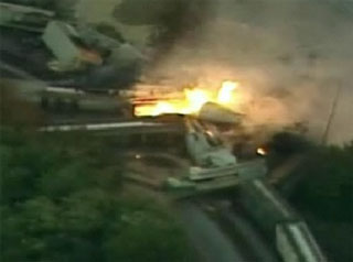 Tàu 98 toa trật bánh, bốc cháy dữ dội