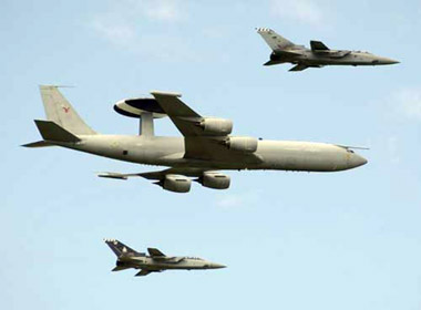Bổ sung cho lực lượng cảnh báo sớm đường không, Không quân Hoàng gia Anh có thêm 3 máy bay chỉ huy và cảnh báo sớm đường không (AWACS) E-3D Sentry tuần tiễu bầu trời sẵn sàng cho các t́nh huống xấu nhất có thể xảy ra.