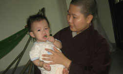 Tâm Phật từ bi, các ni sư quyết định nhận nuôi bé sơ sinh. Tiếp đó là một hành trình gian nan lên xã, xuống huyện để xin giấy khai sinh, làm thủ tục để nhà chùa nhận đỡ đầu cho cháu bé. Mọi việc hoàn tất, cháu được đặt tên là Thích Bảo Thiện và do trụ trì Thích Đàm Chinh đứng tên nuôi, nhưng việc chăm sóc chăm đều do sư Hiếu Thảo đảm nhiệm. “Nhà chùa có thêm người thì vui lắm, nhưng việc nuôi cháu gặp nhiều vất vả. Cháu bị tách khỏi mẹ quá sớm nên tháng nào cũng ốm. Giờ cháu 10 tháng tuổi mà mới được 8 kg", sư thầy Hiếu Thảo kể lại.