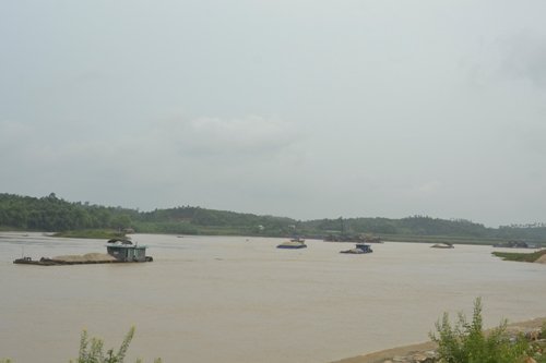 | Các tàu quốc kéo ra khai thác cát “ầm ĩ” cả một khúc sông. |