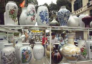 Hàng gốm sứ Trung Quốc tại một cửa hàng tại Hà Nội, ảnh minh họa./AFP photo