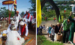 Được biết khi di chuyển xuống đồng bằng để hành lễ với người Chăm, đoàn người Raglai tập kết ở 3 địa điểm có tháp cổ linh thiêng được quy định sẵn gồm tháp Pô Rômê, đền Pô Inư Nưgăr và tháp Pô Klong Garai. Cũng cần nói rơ rằng trước khi mang báu vật xuống núi, bao giờ người Raglai cũng phải làm lễ. Lễ vật cúng thần là 1 con dê và hàng năm phải chúng thêm 5 mâm cơm và 2 con gà.