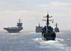 Đi kèm với tàu sân bay George Washington là 2 tuần dương hạm Cowpens (CG-63) và Shiloh (CG-67). Nó hợp thành nhóm tàu sân bay chiến đấu số 5 trong Hạm đội 7.