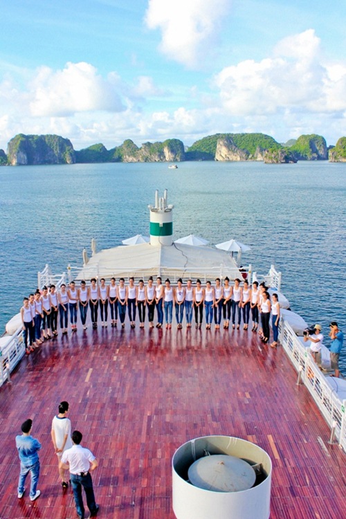 Để có được những cảnh quay tuyệt đẹp và hoành tráng trên du thuyền 5 sao Âu Cơ tại Vịnh Hạ Long, ê-kip VNTM đã phải trải qua 5 ngày làm việc liên tục với những giây phút nghỉ ngơi vô cùng ít ỏi.