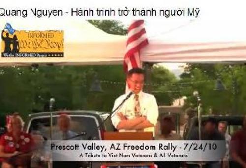 Quang Nguyen đã đọc bài diễn văn cảm ơn các cựu chiến binh Mỹ tham chiến ở Việt Nam. Bài diễn văn này được lưu hành rộng rãi trong giới cựu chiến binh Mỹ. Hành trình trở thành ngưòi Mỹ, trong trường hợp của Quang Nguyen cũng như của đa số người Việt khác, xuất phát từ sự tri ân bao hy sinh to lớn của những người lính Mỹ đã từng chiến đấu ở miền Nam Việt Nam.