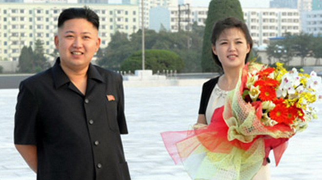 Lănh đạo CHDCND Triều Tiên Kim Jong Un và vợ thăm tượng đài cố lănh đạo Kim Nhật Thành và Kim Jong Il ngày 30-8- Ảnh: KCNA