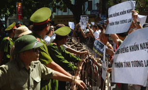 Công an canh chừng người biểu tình chống Trung Quốc hôm 22/7/2012 tại Hà Nội/AFP photo