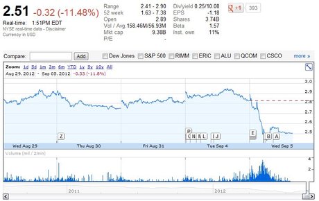 Sau khi công bố Nokia Lumia mới, cổ phiếu Nokia sụt giảm nghiêm trọng