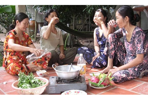 Chiếc ly không xoay vòng như trận nhậu hôm qua, ở đây mấy chị nhậu theo kiểu chia phe: 4 phụ nữ ngồi đối diện với 4 đàn ông chúng tôi, ly rượu chuyền qua lại liên tục giữa hai phe. Đến khi chị Năm chủ nhà quyết định tăng tốc lên 2 ly một lượt, tôi muốn hoa mắt, nhìn thấy phe bên kia có đến... 8 người. Chỉ thêm 1 vòng nữa, tôi giơ tay đầu hàng, xin ra võng nằm, sau lưng là tiếng “trăm phần trăm” của mấy chị.