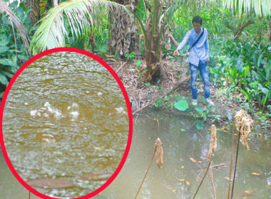Dân làng gọi đây là hồ nước, nhưng trước mắt chúng tôi chỉ là cái mó nước rộng chừng 5m, đục ngầu, mùi hôi tanh bốc lên nồng nặc. Đứng xung quanh, bằng mắt thường cũng đủ thấy dưới lớp bùn xen lẫn lá cây rũ mục, những ụ nước sôi liên tục không ngớt.