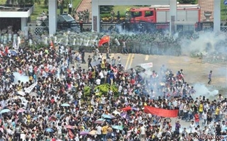 Phản ứng của người dân Trung Quốc còn dữ dội hơn. Hàng nghìn người dân Trung Quốc đã đổ ra khắp các đường phố ở nhiều tỉnh thành để biểu tình chống Nhật. Các cuộc biểu tình từ hoà bình đã chuyển thành bạo lực. Nhiều người Trung Quốc đã ném trứng, chai lọ, đất đá vào các văn phòng đại diện ngoại giao của Nhật Bản, đập phá các cửa hàng, các cơ sở kinh doanh của người Nhật ở Trung Quốc.