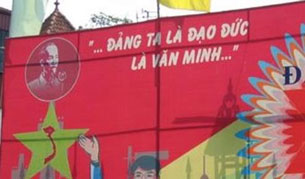 Biểu ngữ to lớn trên đường phố của đảng ta...