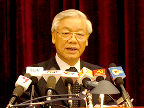 Tổng Bí thư đề nghị các đồng chí tham dự Hội nghị căn cứ vào Đề án, Tờ tŕnh của Bộ Chính trị và bằng kinh nghiệm, thực tiễn của công tác xây dựng quy hoạch cán bộ ở địa phương, Bộ, ngành ḿnh trong những năm qua nghiên cứu, thảo luận, đóng góp nhiều ư kiến vào nội dung của Đề án, nhất là những vấn đề c̣n có ư kiến khác nhau để đi đến thống nhất cao ban hành Nghị quyết, tạo tiền đề cho việc thực hiện nội dung của công tác quy hoạch cán bộ chấp chiến lược.