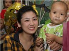 Á Hậu Tú Anh tặng bánh cho các bệnh nhi ung thư
