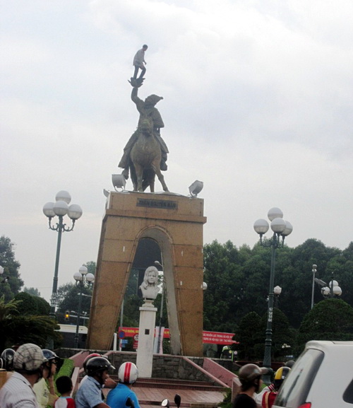 Giải cứu một người “diễn xiếc” trên…tượng đài
