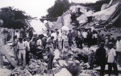 Quang cảnh Cơ quan đại diện Pháp tại Hà Nội sau vụ ném bom ngày 11-10-1972 (ảnh chụp lại tại triển lãm)