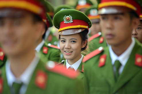Nữ cảnh sát xinh đẹp trong nắng mùa thu