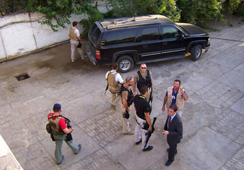 | Nhân viên Blackwater bảo vệ Điện Cộng ḥa ở Iraq. |