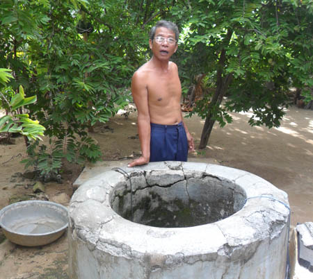 Ông Dự bên giếng cổ 200 tuổi của nhà mình.