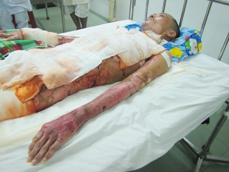Sự sống anh Trinh đang nguy cấp từng ngày v́ vết thương quá nặng, bỏng đến 70% cơ thể