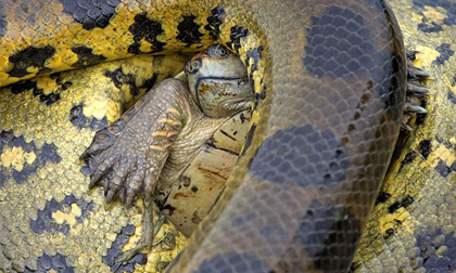 Cuộc chiến đáng khâm phục của một con rùa với rắn khổng lồ