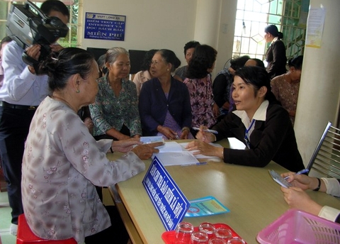 | Các cụ chờ lĩnh lương hưu tại điểm Bưu điện - Văn hóa xă B́nh Tâm, huyên Châu Thành, tỉnh Long An. |