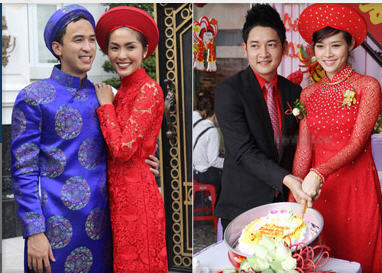 Sao Việt chuộng áo dài đỏ khi đám hỏi