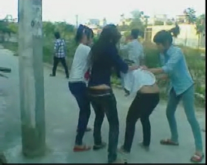 Nữ sinh bị đánh, xé áo trước mặt mọi người