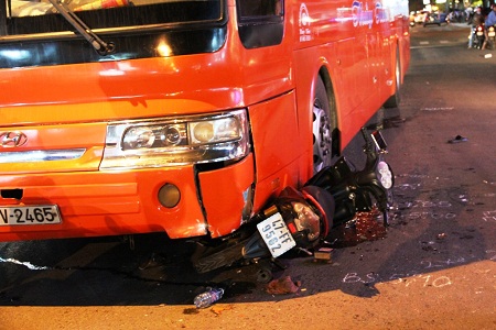 Xe khách nghiền nát xe máy, 1 người trọng thương