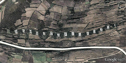 Triều Tiên tạc khẩu hiệu khổng lồ về Kim Jong-un