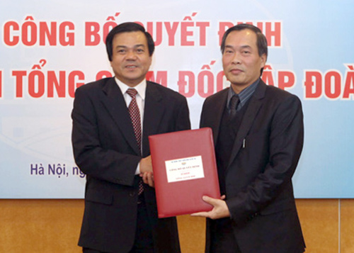 | Ông Nghiêm Văn Bang (trái) - quyền Chủ tịch HĐTV và Tổng giám đốc HUD trong ngày nhậm chức |