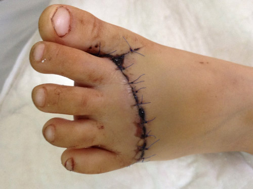 Bé 4 tuổi đứt nửa bàn chân vì “chắn bô“ xe Air Blade