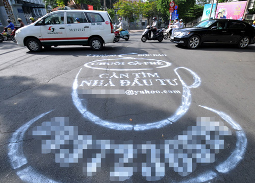 Đă có rất nhiều h́nh ảnh quảng cáo rao vặt được sơn vẽ trên mặt TP.Hồ Chí Minh xuất hiện trong một thời gian dài.Nội dung quảng cáo là cần t́m nhà đầu tư cho chuỗi cà phê - ư tưởng độc đáo. Địa chỉ email và số điện thoại di động liên lạc được sơn vẽ với kích cỡ khá to ngay trên mặt đường.