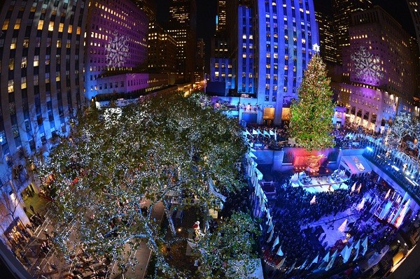 Bức ảnh là h́nh cây thông Noel ở trung tâm Rockefeller được thắp sáng tại New York chuẩn bị cho lễ Giáng sinh sắp đến. (Ảnh: Stan Honda).