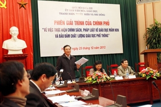 Đó là thừa nhận của Bộ trưởng Bộ GD& ĐT Phạm Vũ Luận khi giải trình với Ủy ban Văn hóa, giáo dục, thanh niên, thiếu niên và nhi đồng của Quốc hội, trả lời trực tiếp chất vấn của các đại biểu Quốc hội, ngày 25/12.