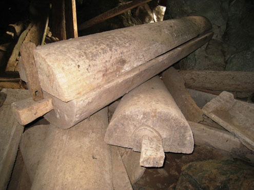 | Toàn bộ quan tài ở núi Pa Cáng đều được làm bằng thân cây gỗ lớn, nhiều bộ ước nặng hàng tấn. Ảnh: Lê Hoàng. |