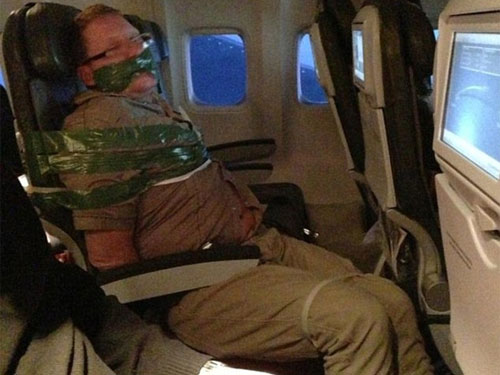 Hành khách sau sượu bị trói trên máy bay