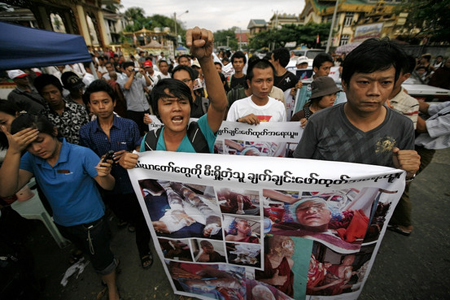 Người Myanmar biểu tình một dự án khai thác đồng của Trung Quốc tại Yangon.