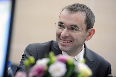 Đại sứ Pháp Poirier tại ṭa soạn VnExpress.