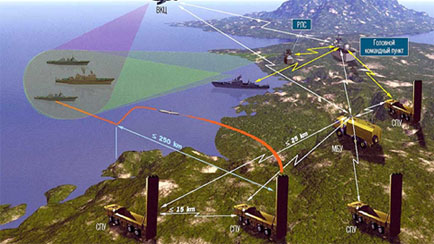 (Tên lửa Yakhon của hệ thống này với chiến thuật “bầy sói” thì tàu khu trục hiện đại nhất như của Trung Quốc Tupe 054A (mới có 4 chiếc) thì trong khoảng cách 300km với 2 quả trúng đích là Thuyền trưởng tàu phải ôm phao cứu sinh).