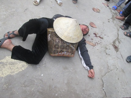 Bà Bình sau khi bị Hoàng Thế Anh đánh chảy máu và ngất vào sáng ngày 23/1