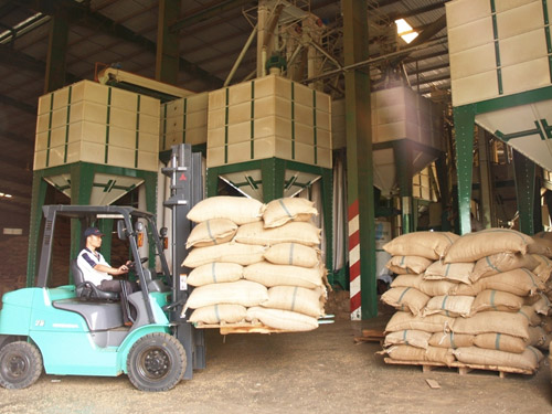 Trong ảnh: Đóng gói cà phê xuất khẩu tại