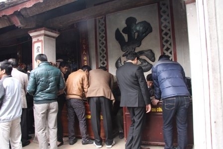 “Mê trận” bàn ghi công đức và ḥm nhét “tiền dầu nhang nhà đền” tại đền Trần. Ảnh: Kiêm Trung