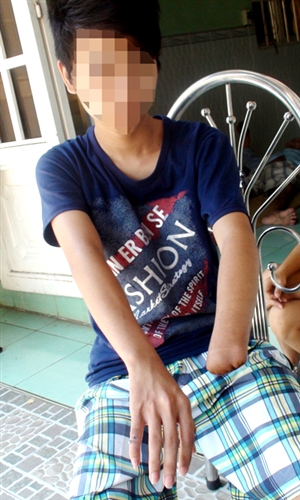 | Q. bị mất một bàn tay trong lúc tự chế pháo vào ngày 3-2. Ảnh: N.Khải |