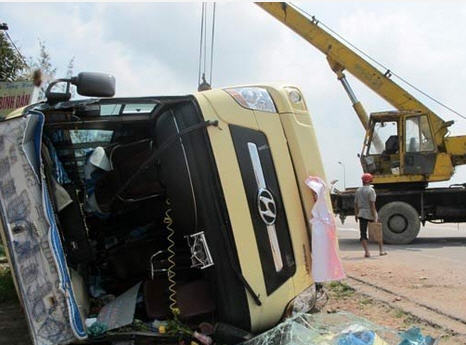 Tài xế ngủ ngật, xe khách chở 51 Việt kiều bị lật