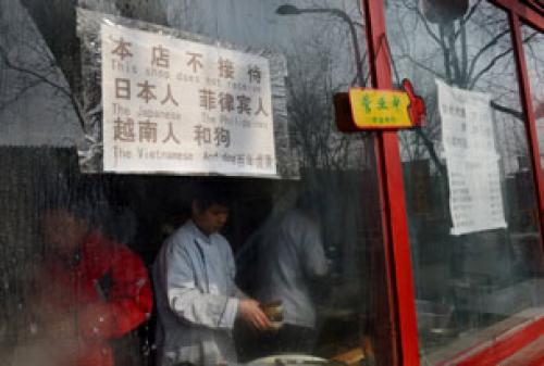 Tấm bảng: Cửa hàng này không tiếp người Nhật Bản, Philippines, Việt Nam và Dog - tại một nhà hàng ở khu du lịch Houhai - Bắc
