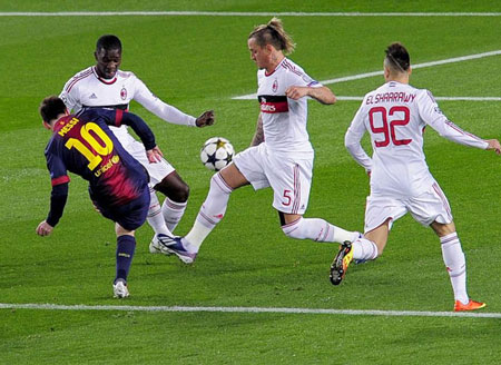 Barcelona đã chơi một trận đấu đầy hứng khởi khi thắng đậm Milan 4-0 tại Nou Camp và giành quyền vào tứ kết Champions League khi thắng chung cuộc 4-2 sau hai trận. Messi tỏa sáng với một cú đúp, hai bàn còn lại thuộc về David Villa và Jordi Alba.