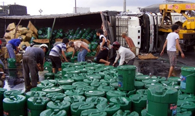 Xe gặp nạn, người dân lao vào hôi của