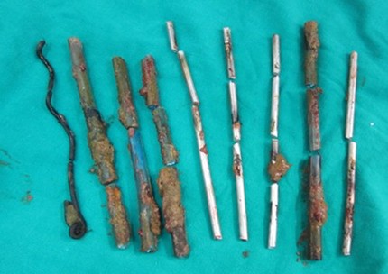 Thủng đại tràng do nuốt 9 que sắt